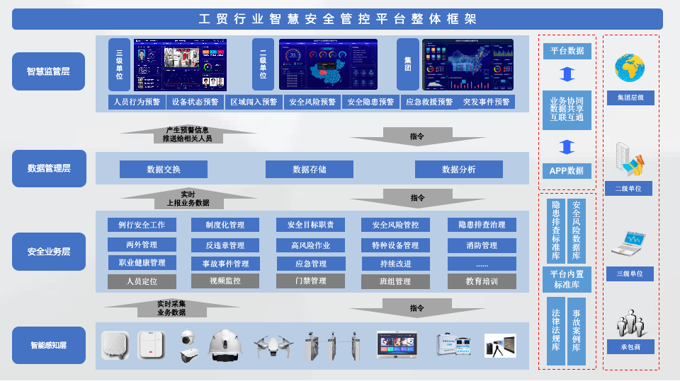 通過構(gòu)建集團(tuán)、二級(jí)單位和三級(jí)單位統(tǒng)一應(yīng)用平臺(tái),實(shí)現(xiàn)“安全管理數(shù)據(jù)”上下貫通、左右協(xié)同。