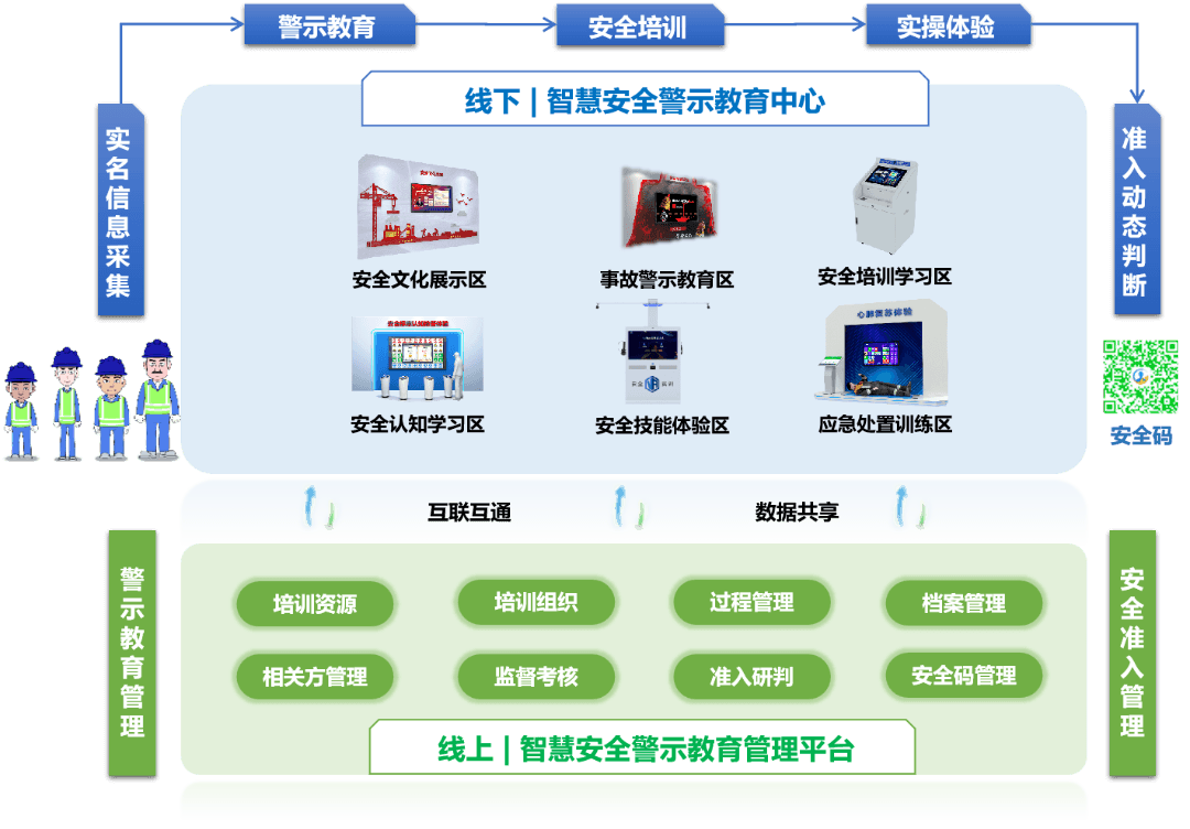 通過信息化管理工具“智慧安全警示教育管理平臺”,對安全警示教育培訓(xùn)組織、培訓(xùn)過程、培訓(xùn)檔案進行管理。同時將警示教育室運營與現(xiàn)場安全管理相結(jié)合,采用安全準入制度確保人員先培訓(xùn)后上崗。