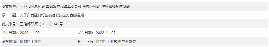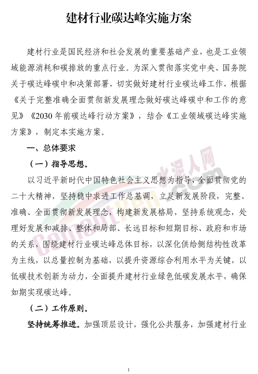 四部印發(fā)《建材行業(yè)碳達(dá)峰實施方案》