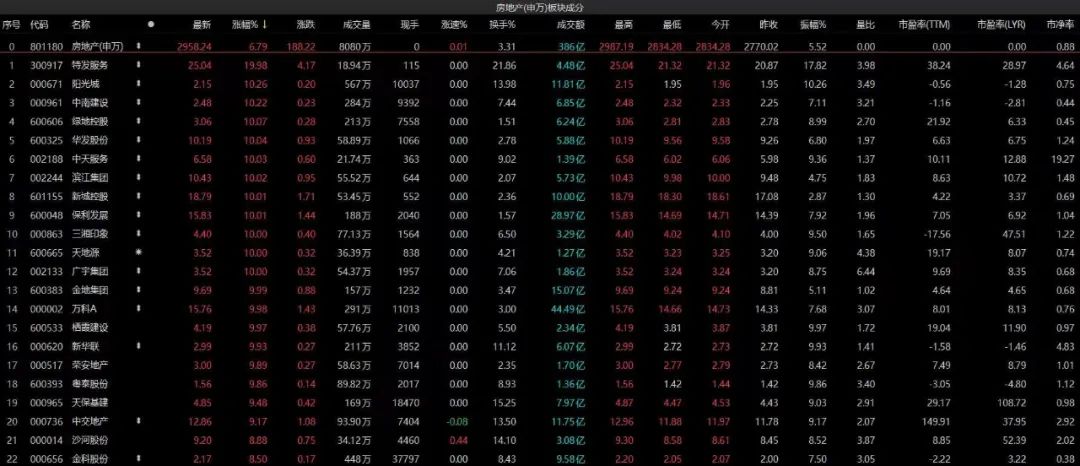 同時(shí),房地產(chǎn)相關(guān)產(chǎn)業(yè)鏈全線高開,房地產(chǎn)開發(fā)、房地產(chǎn)服務(wù)、水泥建材、裝修裝飾、工程咨詢服務(wù)、家電、銀行等板塊表現(xiàn)搶眼,租售同權(quán)、REITS等題材板塊表現(xiàn)活躍。