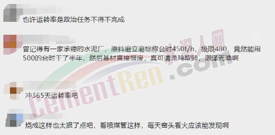 有網(wǎng)友提到承德的一家水泥廠原料磨立磨標稱臺時450t/h,極限480t/h,實際達到500t/h,半年后基材直接報廢,此舉可謂殺雞取卵,涸澤而漁。也有網(wǎng)友表示,“運轉(zhuǎn)率任務不得不完成”,“沖365天運轉(zhuǎn)率”;還有網(wǎng)友表示,“看噴煤管這樣,每天窯頭看火應該能發(fā)現(xiàn)”??梢?,這是企業(yè)相關(guān)人員明知設備出現(xiàn)問題卻依然堅持帶病運行,以至于噴煤管“帶病延年”。