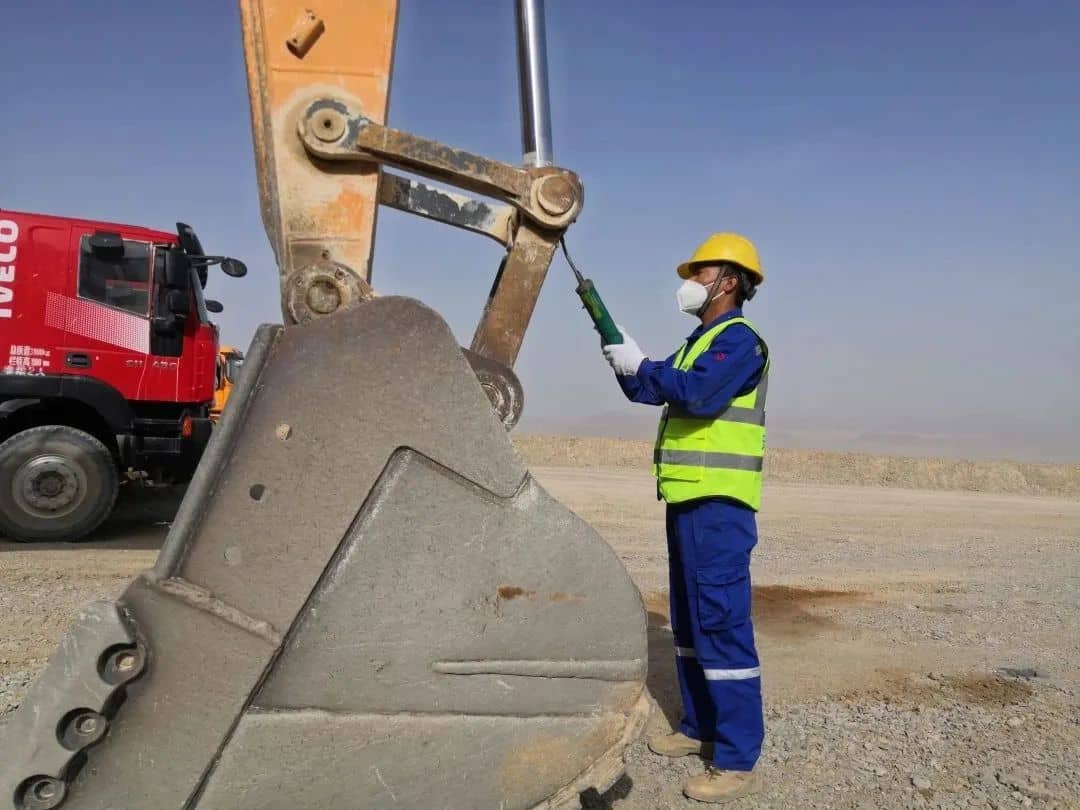 在黃沙烈日下推進礦山標準化建設(shè),在戈壁大漠上種下綠色發(fā)展的花朵。他們憑著一股不服輸?shù)捻g勁兒和能闖能干的拼勁兒,在新疆一呆就是12年,曾經(jīng)新入職的小青年,如今也已變成了滄桑的漠北漢子;曾經(jīng)簡陋的圍壩,如今也變成了干凈整潔的生活區(qū):衣柜、浴室、食堂、健身設(shè)備一應(yīng)俱全。從阿克蘇分公司礦山平臺向生活區(qū)遠眺,碧綠的水池是這片荒漠上的明珠,規(guī)劃整齊的上山道路是蜿蜒的絲帶。
