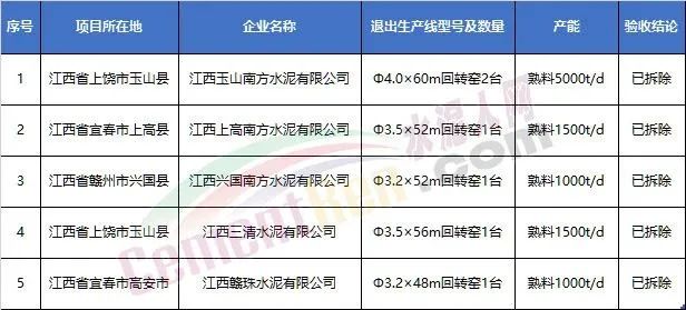 2月24日江西省工信廳公告:江西贛豐水泥有限責(zé)任公司740t/d已關(guān)停和拆除。