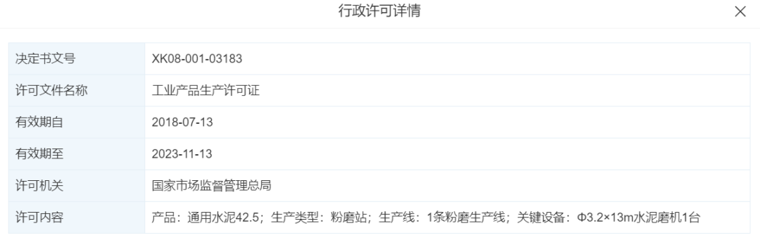 據(jù)查詢,廣西梧州市萬凌水泥有限公司生產(chǎn)許可證編號XK08-001-02840,有效期至2025年3月12日。企業(yè)類型為粉磨站,擁有一條粉磨生產(chǎn)線,關鍵設備為Φ3.5×13m水泥磨機1臺。
