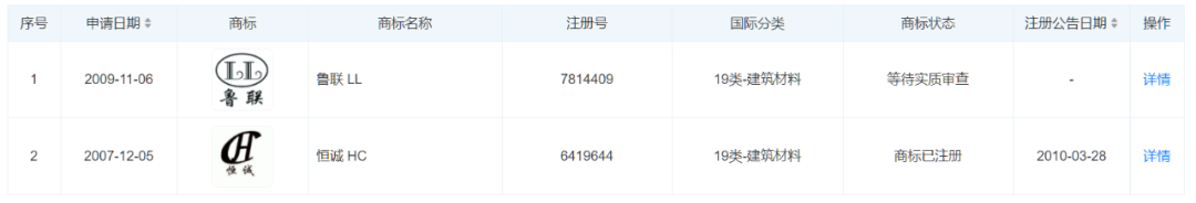 企業(yè)商標注冊信息顯示,旗下共有“萬凌”和“鴛鴦江”兩個注冊品牌,并沒有不合格品所列的“粵華水泥”注冊商標。