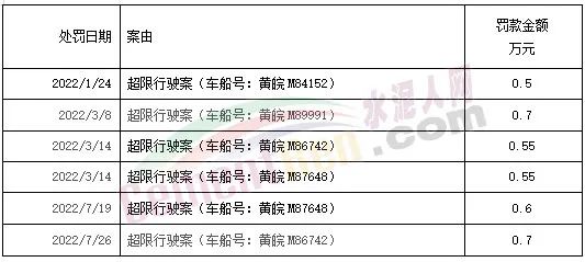 天長市千秋水泥有限責任公司因6起違法在公路上超限行駛案2022年內(nèi)被天長市交通運輸局處罰3.6萬元。處罰日期分別1月、3月和7月。