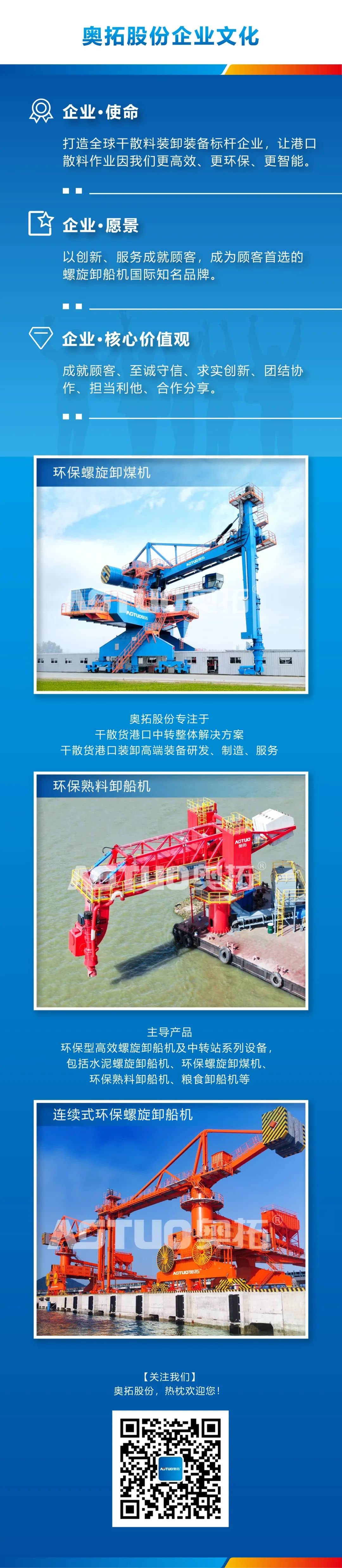 本次卸船試生產(chǎn)的一次性成功,再一次驗(yàn)證了AOTUO奧拓螺旋卸船機(jī)的技術(shù)穩(wěn)定性與該制造領(lǐng)域的領(lǐng)先優(yōu)勢(shì)。
