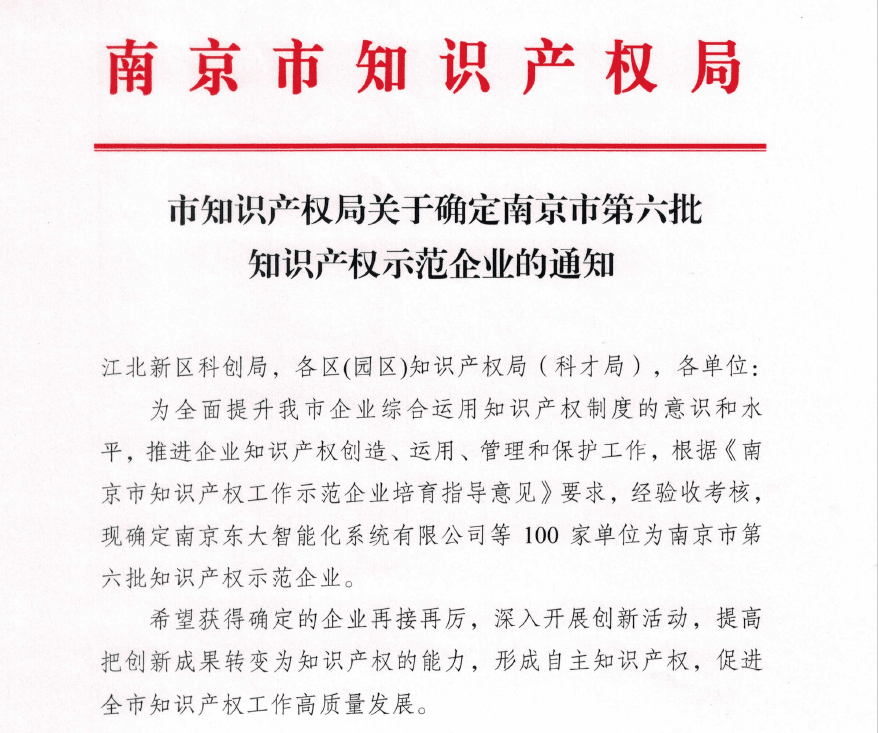 南京市知識(shí)產(chǎn)權(quán)示范企業(yè)