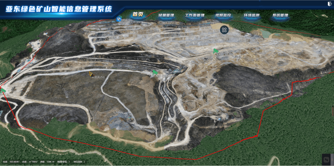 為了精準(zhǔn)開采、綠色開采,亞?wèn)|水泥建成了黃岡亞?wèn)|、江西亞?wèn)|及四川亞?wèn)|礦山三維可視化系統(tǒng)模組,提供礦山可視化展示效果,全方位展示礦山采區(qū)生產(chǎn)信息、復(fù)墾綠化及環(huán)境監(jiān)測(cè)(粉塵、噪音等)等內(nèi)容。三維分析測(cè)量工具可減少生產(chǎn)中的測(cè)量作業(yè)工作,模型高程和水平量測(cè)精度優(yōu)于10cm/像素點(diǎn),可以達(dá)到 1:500 比例尺的精度,提高工作效率。