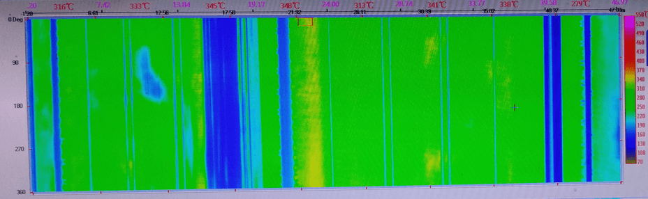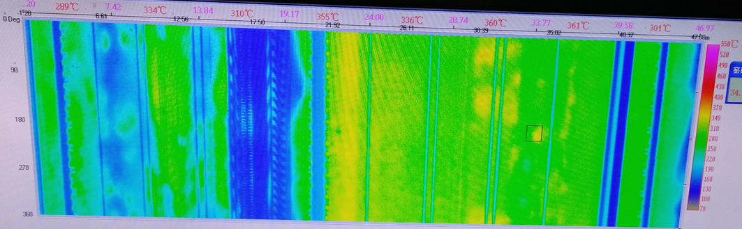 圖5 HJ節(jié)能燃燒器窯筒體溫度分布2