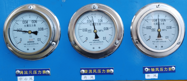 圖6 HJ節(jié)能燃燒器現(xiàn)場(chǎng)各風(fēng)道壓力表壓力
