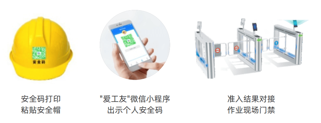相關(guān)方人員正式入廠后,賦予“一人一碼”,可在“愛工友”微信小程序上查看個(gè)人安全碼狀態(tài),安全碼狀態(tài)的準(zhǔn)入結(jié)果對(duì)接作業(yè)現(xiàn)場門禁,綠碼和黃碼狀態(tài)可通過門禁,紅碼及灰碼禁入。