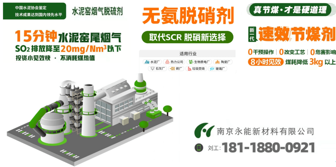 自成立以來,南京永能始終致力于節(jié)能減排產(chǎn)品與工業(yè)環(huán)保外加劑的綠色事業(yè),已先后獲得50余項(xiàng)專利。其無氨脫硝劑可以在SNCR、SCR等脫硝系統(tǒng)后端進(jìn)行輔助脫硝,無氨基,能顯著降低水泥企業(yè)氨水單耗和氨逃逸指標(biāo)。未來,南京永能希望能將這項(xiàng)工程技術(shù)推廣應(yīng)用到更多的水泥生產(chǎn)企業(yè),為這些企業(yè)的評(píng)級(jí)和長(zhǎng)期可持續(xù)發(fā)展提供技術(shù)支撐。