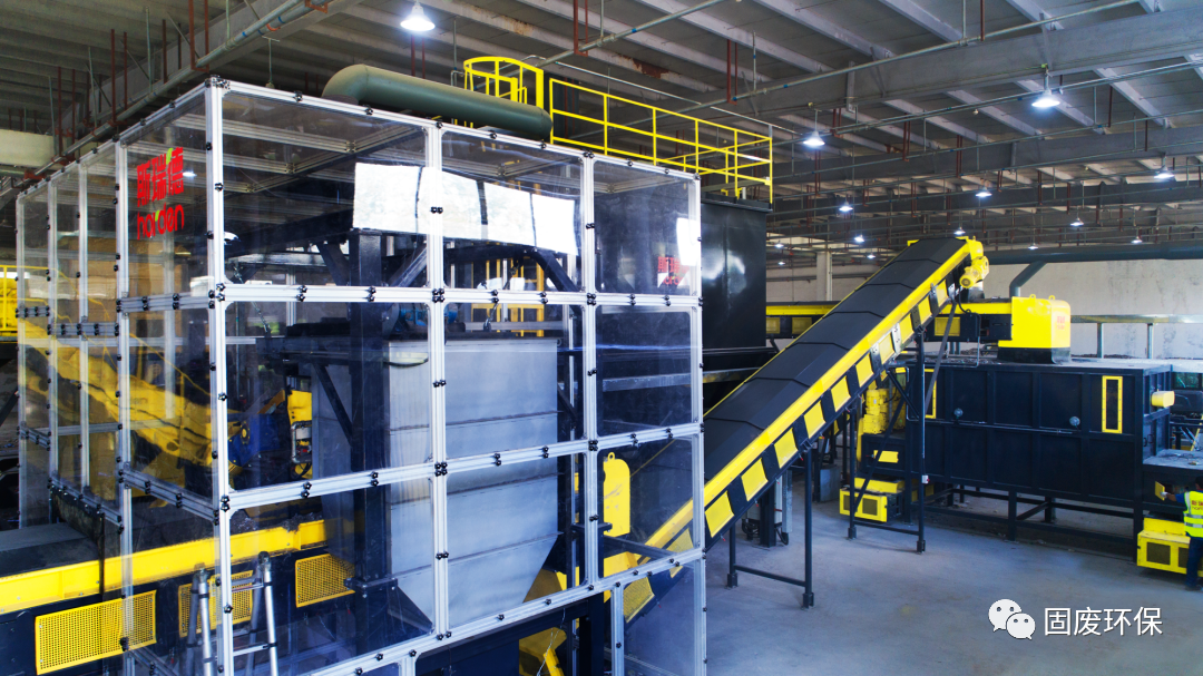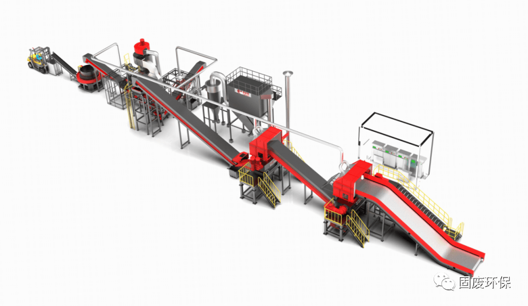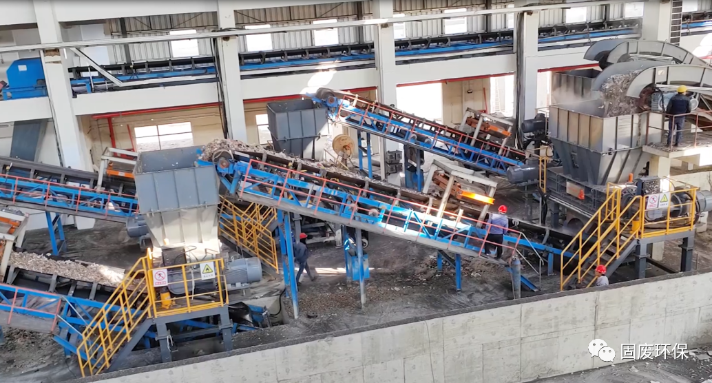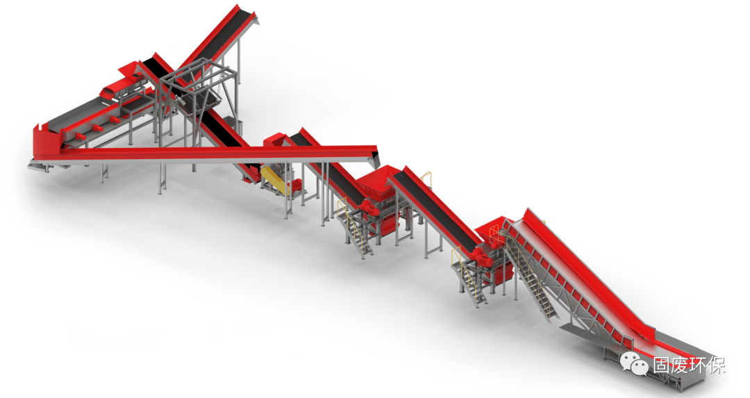 該系統(tǒng)先將待破碎的生活垃圾送至一級破碎進(jìn)行粗碎,再將破碎后的物料經(jīng)過篩分、磁選、風(fēng)選等精細(xì)化處理工藝,得到可利用的金屬、輕物質(zhì)和重物質(zhì);其中輕物質(zhì)被繼續(xù)輸送至二級破碎進(jìn)行細(xì)碎,最終得到粒狀98%小于30-80mm的可回收利用資源。