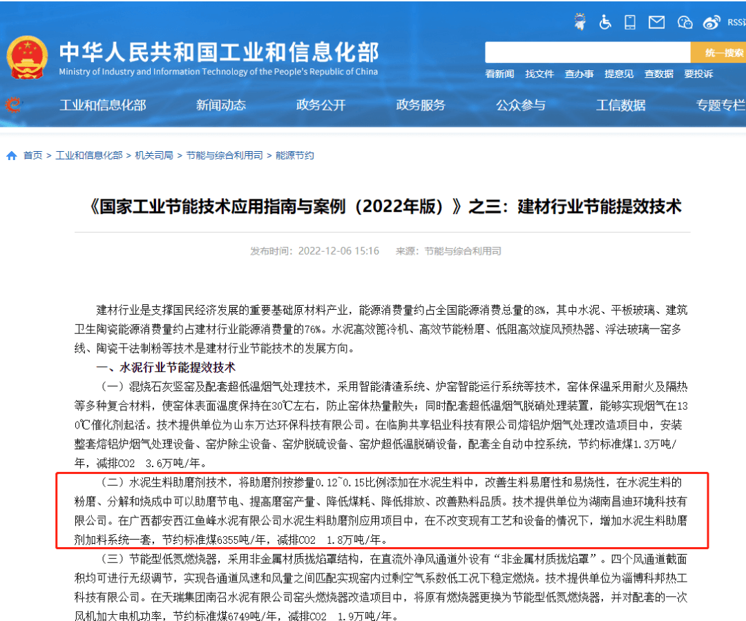 為加快推廣應(yīng)用先進適用節(jié)能技術(shù)裝備,促進企業(yè)節(jié)能降碳、降本增效,工信部近日發(fā)布了《國家工業(yè)和信息化領(lǐng)域節(jié)能技術(shù)裝備推薦目錄(2022年版)》,湖南昌迪環(huán)境科技有限公司(以下簡稱“湖南昌迪”)申報的水泥生料助磨劑應(yīng)用技術(shù)納入建材行業(yè)節(jié)能提效技術(shù)裝備推薦。