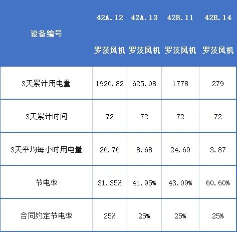 同時提到相較此前設備,濰坊富源安裝的四臺羅茨風機體積小,噪音低,節(jié)能效果顯著。測試節(jié)電效率達到31.35%~60.06%,四臺設備全部超過合同約定的節(jié)電效率。