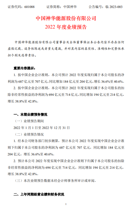 日前,“煤炭一哥”中國神華披露2022年度業(yè)績預告,預計2022年實現歸母凈利潤687億元至707億元,同比增長36.6%至40.6%。若按歸母凈利潤上限計算,“煤炭一哥”中國神華預計2022年度日凈賺1.94億元。