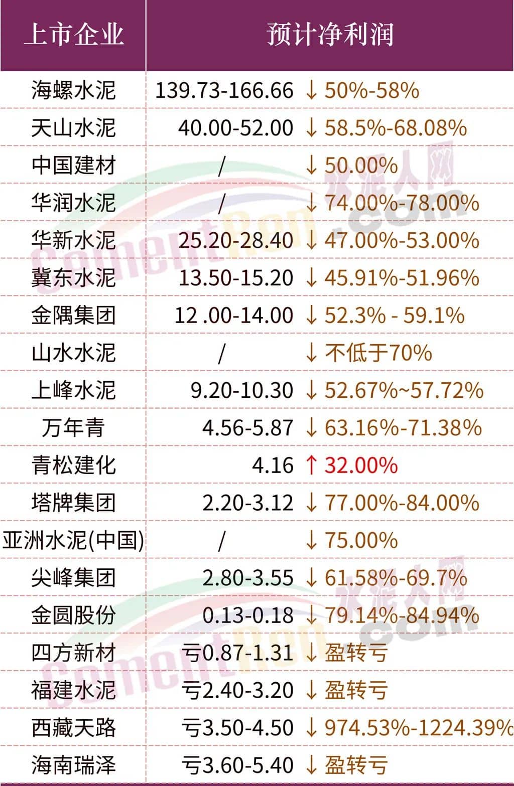 截至1月31日,19家上市建材企業(yè)公布2022年業(yè)績預告。其中, 中國建材 、 海螺水泥 、天山水泥、華潤水泥、 華新水泥和冀東水泥等18家企業(yè)2022年凈利潤預計下降。