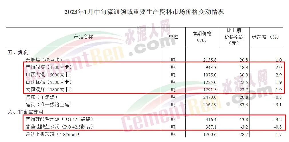 按照國家統(tǒng)計局最近發(fā)布的2023年1月中旬流通領域5500大卡煤炭報價1225元/噸和是P.O42.5散裝水泥報價387.1元/噸計算,煤炭價格是水泥價格的3.16倍。煤炭作為水泥生產主要成本支出長期以來一直在扮演為煤炭“打工”的角色。