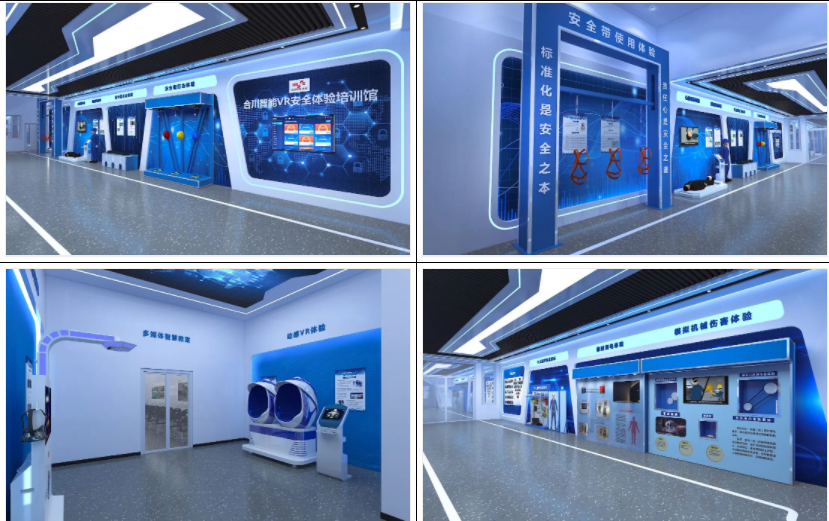 金隅冀東水泥合川有限公司智能VR安全體驗培訓館分為前廳、安全防護認知區(qū)、事故傷害實訓區(qū)、多媒體智慧教室、VR事故體驗區(qū)共五大功能區(qū),采用“正向實訓、逆向體驗、安全互動”的安全培訓創(chuàng)新模式。