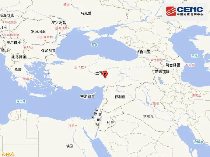 02月06日18時(shí)24分在土耳其(北緯38.00度,東經(jīng)37.15度)發(fā)生7.8級地震,震源深度20千米。