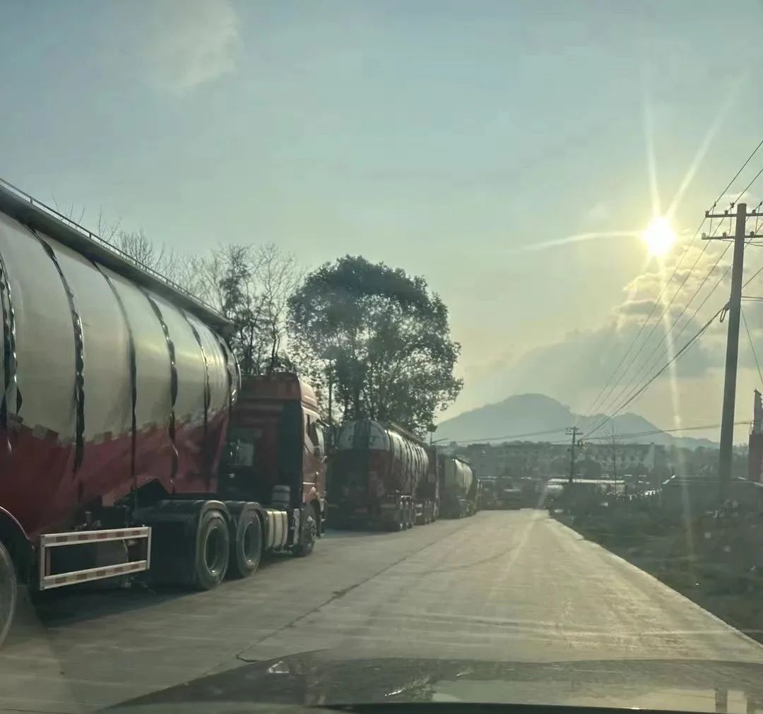 圖:浙江某水泥廠門前排隊(duì)車