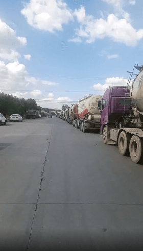 廣西區(qū)域紅獅水泥廠外水泥車排隊