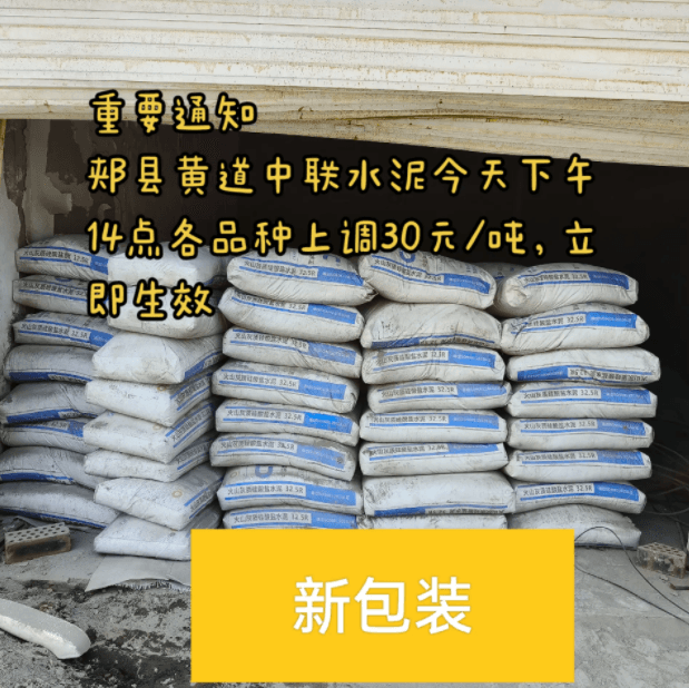郟縣黃道中聯(lián)水泥價格自3月6日下午14點起上調(diào)30元/噸。