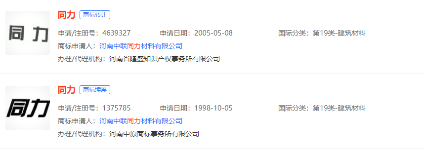 安陽縣科耐水泥有限公司,工業(yè)品生產許可證編號:XK08-001-03670,有效期至2025年1月10日。企業(yè)共有包含科耐山水、科耐同力、同力科耐、天瑞科耐、中聯科耐在內的9條商標申請,與河南、山東區(qū)域幾大知名品牌相關聯。