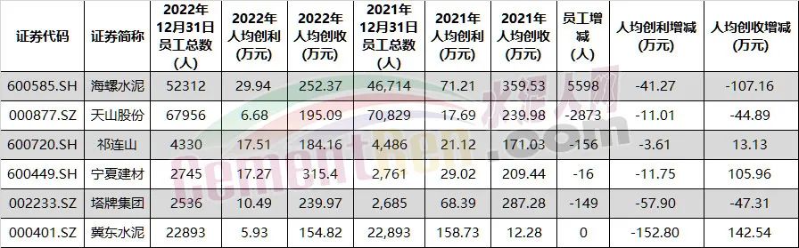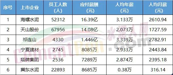 照此核算,A股已公布業(yè)績的6家上市企業(yè)中,5家企業(yè)人均月薪均在2800元以下,平均月薪2392元。冀東水泥員工人數(shù)從2021年至今一直保持22893人,人均月薪僅為316.14元。