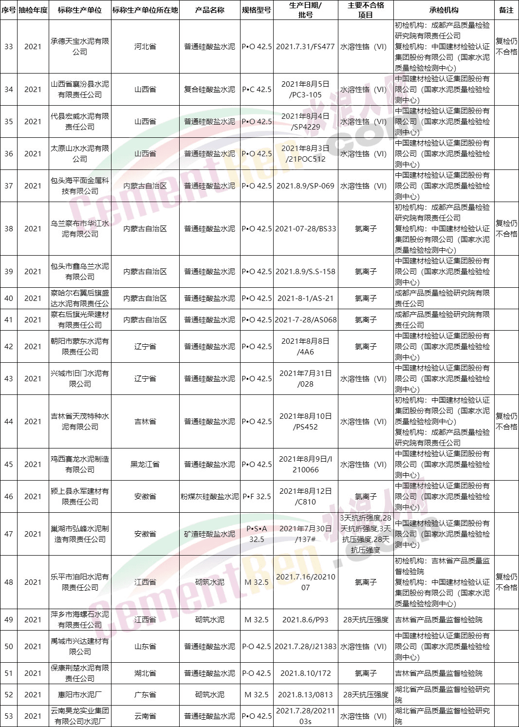 2020~2022年國抽水泥產(chǎn)品不合格名單發(fā)布,共77批次不合格