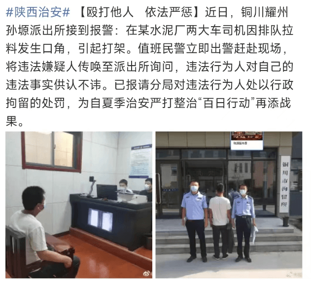 銅川耀州孫源派出所接到報(bào)警,在某水泥廠兩大車司機(jī)排隊(duì)拉料發(fā)生口角,引起打架。