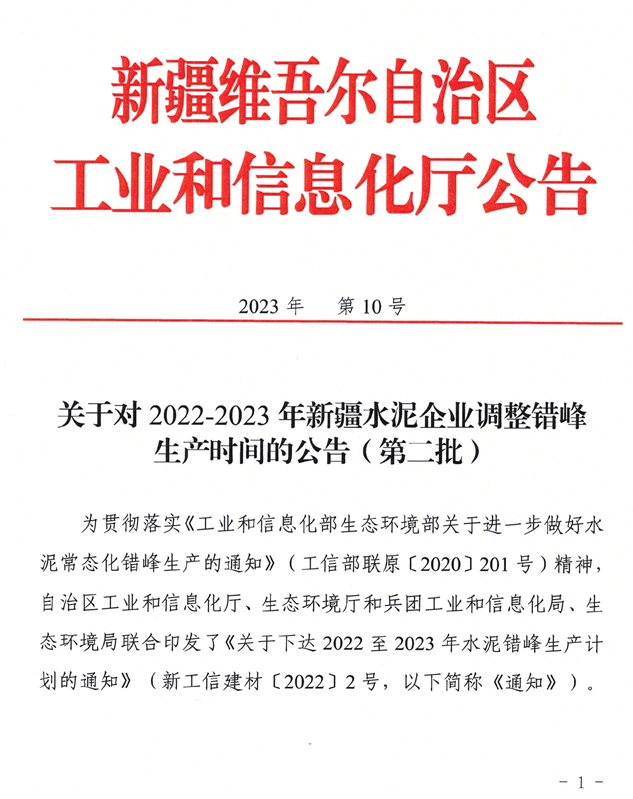 寧夏回族自治區(qū)要求全區(qū)所有水泥熟料生產(chǎn)企業(yè)2022年11月1日~2023年3月10日期間錯(cuò)峰生產(chǎn)130天,時(shí)限內(nèi)未完成錯(cuò)峰生產(chǎn)的天數(shù)需在2023年6月底前補(bǔ)足。