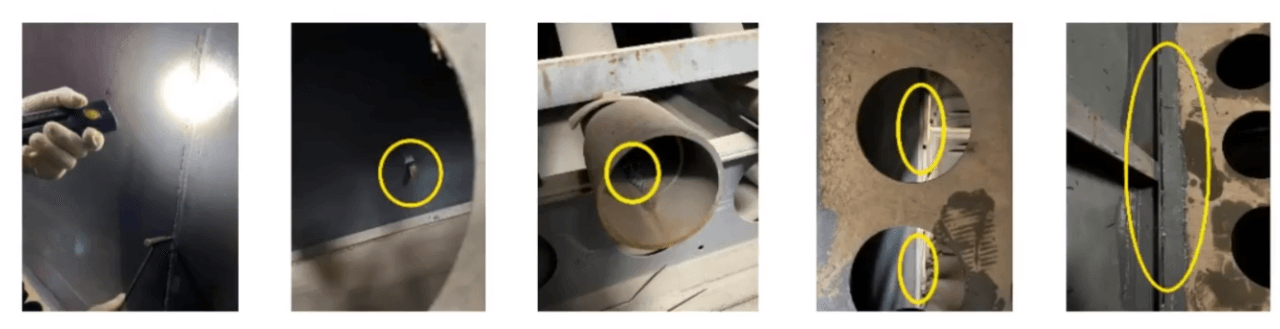 5 及時(shí)維護(hù)除塵器蓋板等各處漏風(fēng)、漏水問題。漏風(fēng)可能導(dǎo)致冷空氣進(jìn)入后,局部結(jié)露腐蝕,除塵器入口負(fù)壓不足,系統(tǒng)壓差增大等。