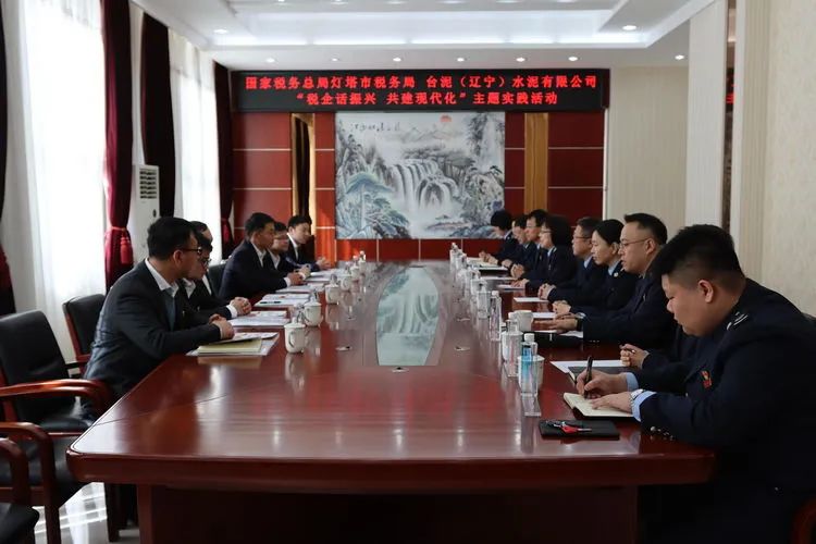 4月7日上午,在金隅冀東水泥遼寧區(qū)域黨委書記閆海峰帶領(lǐng)下,遼寧臺泥項目托管組負責(zé)人孔建平、公司副總經(jīng)理李震、財務(wù)總監(jiān)楊立國、財務(wù)經(jīng)理陳軍劍、辦公室主任秦雙江等黨員干部一行6人走進燈塔市稅務(wù)局,共同開展 “稅企話振興 共建現(xiàn)代化” 支部共建活動。燈塔市稅務(wù)局黨委書記、局長韓云玲、紀(jì)檢組組長陳震、副局長張毅、高東雯等相關(guān)部門負責(zé)人參加了此次活動。