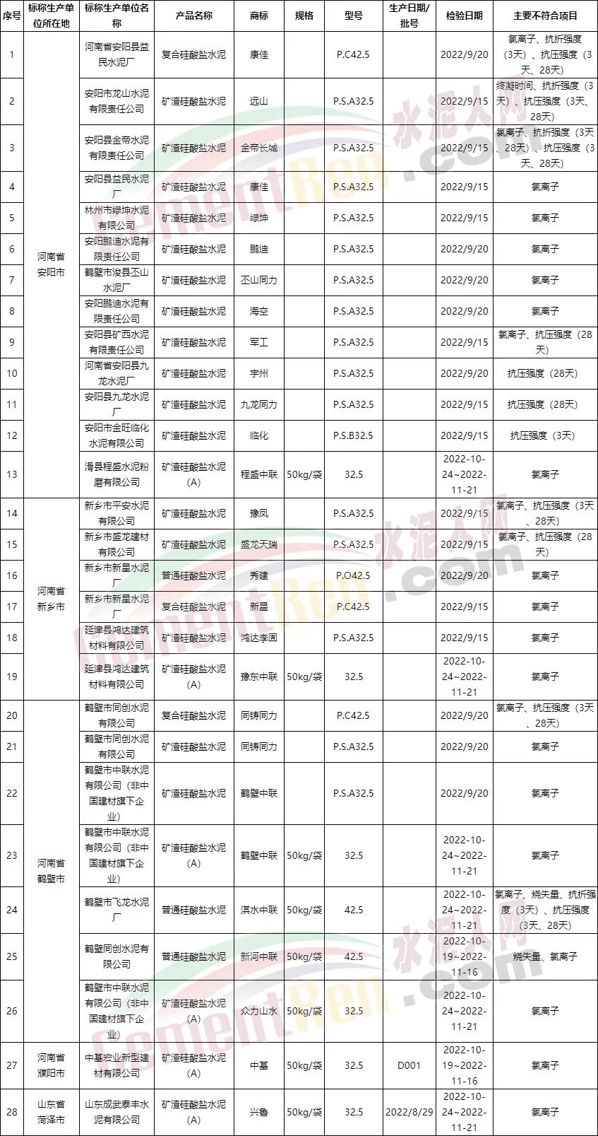 水泥質(zhì)量萬(wàn)里行組委會(huì)此前通報(bào)的2022年水泥質(zhì)量抽檢結(jié)果顯示,菏澤及豫北區(qū)域共抽檢43批次不合格水泥,其中28批次不合格,合格的產(chǎn)品僅15批次,不合格率達(dá)到了驚人的65.1%。