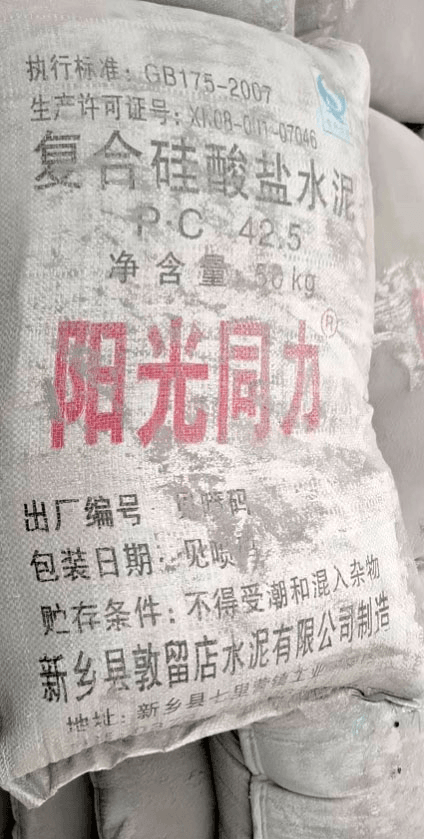 標(biāo)稱品牌“陽光同力”,商標(biāo)已注冊,生產(chǎn)許可證在有效期內(nèi)。產(chǎn)品外包裝可見,生產(chǎn)許可證編號:XK08-001-07046;制造企業(yè):新鄉(xiāng)縣敦留店水泥有限公司;地址:新鄉(xiāng)縣七里營鎮(zhèn)。