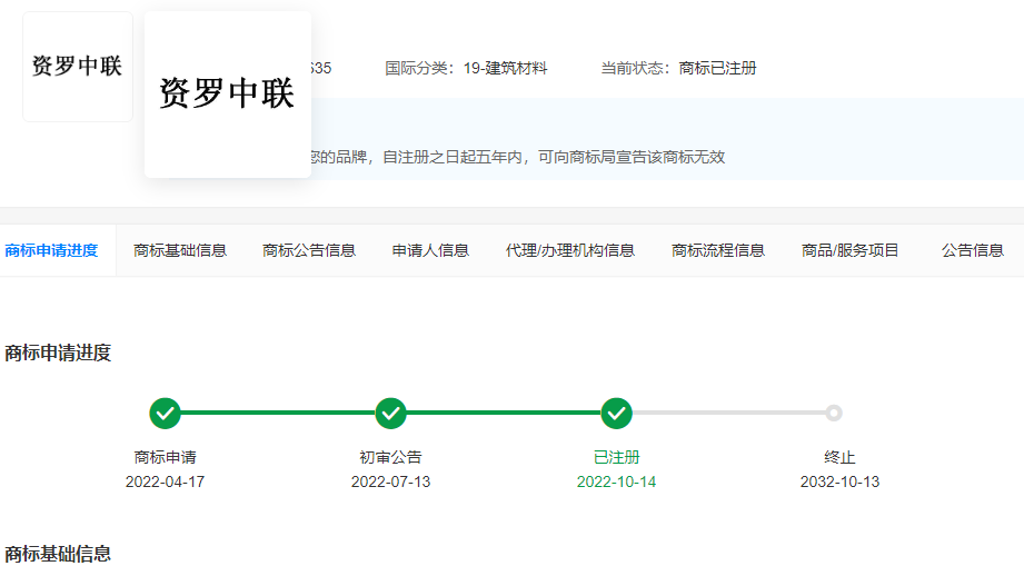 標(biāo)稱品牌“資羅中聯(lián)”已注冊,商標(biāo)申請人為洛寧縣新陽商貿(mào)有限公司,而非標(biāo)稱的“洛陽新陽商貿(mào)有限公司”。