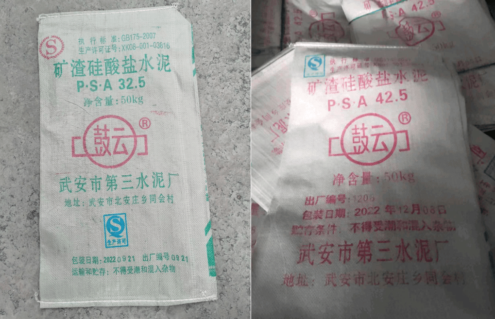 產(chǎn)品標號/包裝類型:P.S.A32.5、P.S.A42.5包裝水泥/凈含量50kg