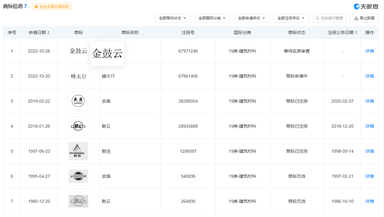該企業(yè)名下共有7條商標信息,其中圖形武盾、鼓云、鼓洺3個商標為已注冊狀態(tài),2022年10月申請的金鼓云商標目前狀態(tài)為“等待實質(zhì)審查”;同期申請的“峰太行”狀態(tài)為“商標申請中”;1995年4月27日申請的圖形“武盾”和1985年申請的圖片“鼓云”目前為無效狀態(tài)。上圖中標注為“20220921出廠”的產(chǎn)品商標正是1995年4月27日申請的目前為無效狀態(tài)的圖形“武盾”。