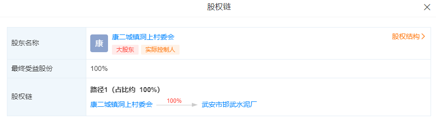 據(jù)查詢,武安市邯武水泥廠法定代表人王騰,工商注冊地址為河北省邯鄲市武安市康二城鎮(zhèn)洞上村東。股權(quán)鏈信息顯示,其大股東為康二城鎮(zhèn)洞上村委會。
