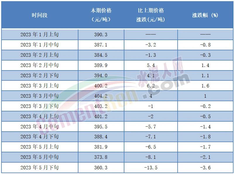 從國(guó)家統(tǒng)計(jì)局公布的數(shù)據(jù)可見(jiàn),從3月下旬開(kāi)始流通領(lǐng)域水泥價(jià)格持續(xù)下滑。環(huán)比年內(nèi)最高價(jià)404.2元/噸,下跌了43.9元/噸。