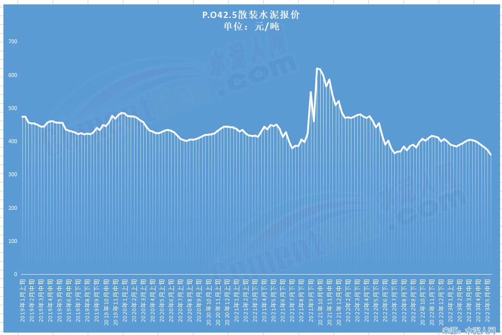 流通領(lǐng)域水泥報(bào)價(jià):大跌258.6元/噸,跌幅41.78%