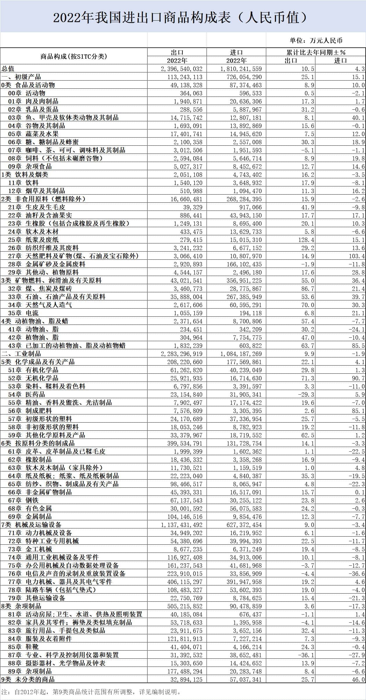外貿(mào)市場(chǎng)回暖并不如預(yù)期,我國(guó)出口產(chǎn)品也受到波及。2022年我國(guó)出口商品最多的是“工業(yè)制品”。其中,機(jī)械及運(yùn)輸設(shè)備出口22.8萬億元、雜項(xiàng)制品出口5.1萬億元、按原料分類的制成品出口4萬億元、化學(xué)成品及有關(guān)產(chǎn)品出口2.1萬億元、食品及活動(dòng)物出庫4914億元。