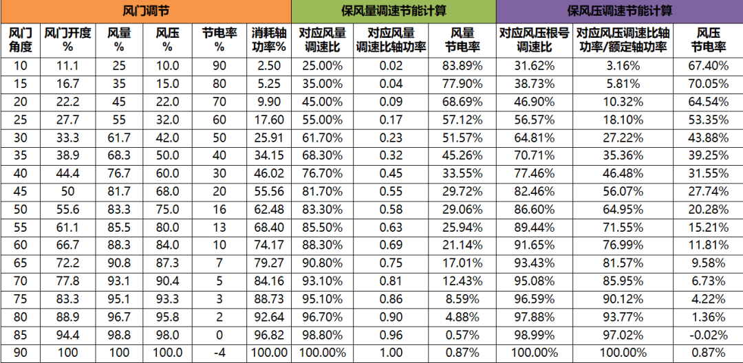相較于工頻轉(zhuǎn)速,65度風門開度節(jié)電率約為15.5%。