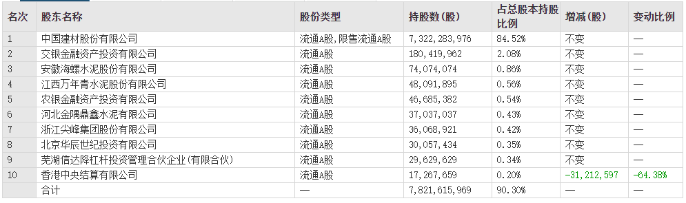 水泥人網(wǎng)注意到,天山水泥10大股東內(nèi)不僅有其母公司中國(guó)建材股份有限公司,還有海螺水泥、萬(wàn)年青水泥、金隅鼎鑫、尖峰集團(tuán)等同行業(yè)企業(yè),其中海螺水泥持股比例為4.48%。