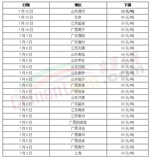 另據(jù)了解,進(jìn)入7月,山東、江蘇、廣東、廣西等多區(qū)域水泥市場仍處于下行趨勢,各企業(yè)報價低仍持續(xù)下跌中。