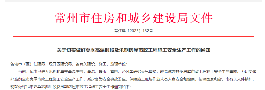 江蘇常州市住建局要求,當(dāng)氣溫達(dá)到35℃以上時(shí),11:00至15:00間不安排作業(yè)人員從事日光直接曝曬下的施工,更不得安排室外露天作業(yè)勞動(dòng)者加班;當(dāng)最高氣溫達(dá)到40℃以上,應(yīng)當(dāng)停止施工。