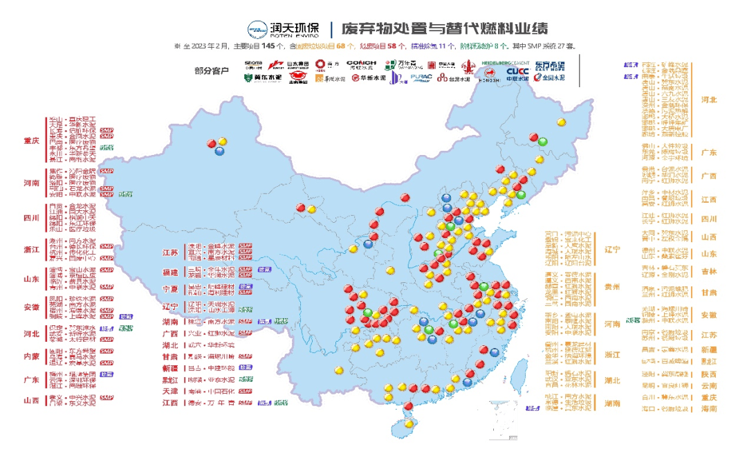 截至目前,潤(rùn)天環(huán)保已成功為中國(guó)建材、海螺水泥、金隅冀東、紅獅水泥、臺(tái)灣水泥、亞洲水泥、金圓水泥、華新水泥、山水水泥、萬(wàn)年青水泥等各大水泥集團(tuán)落地了廢棄物協(xié)同處置、水泥窯燃料替代等多類(lèi)項(xiàng)目。多家水泥企業(yè)實(shí)踐應(yīng)用證明,潤(rùn)天環(huán)保水泥窯協(xié)同處置危險(xiǎn)廢物通過(guò)科學(xué)配伍,可以保持較高的焚燒熱值,在窯內(nèi)處置時(shí)可以部分替代燃料使用,有效降低了化石燃料的消耗,符合國(guó)家“碳達(dá)峰、碳中和”目標(biāo)。協(xié)同處置危險(xiǎn)廢物后產(chǎn)生的灰渣進(jìn)入水泥熟料,增加了水泥熟料的產(chǎn)量,真正意義上實(shí)現(xiàn)了危險(xiǎn)廢物“零填埋”的終端處置目標(biāo),符合無(wú)廢城市建設(shè)政策導(dǎo)向。