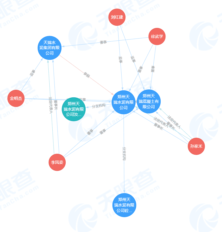 水泥人網(wǎng)注意到,成立不足一年就注銷的水泥企業(yè)中包含2022年5月10日成立,2023年6月2日核準的鄭州天瑞水泥有限公司汝州分公司 。從企業(yè)關(guān)系圖譜可見,該企業(yè)為上市公司天瑞集團下屬企業(yè)。